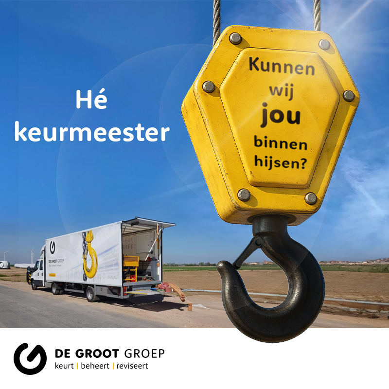Bij De Groot Hijstechniek zorgen we ervoor dat onze klanten veilig kunnen werken volgens de hoogste normen. Ons team van keurmeesters inspecteert en certificeert hijs- en hefmiddelen, valbeveiliging en elektrische gereedschappen. Met korte lijnen, direct contact en een hecht team maken we veiligheid praktisch en toegankelijk voor onze klanten.